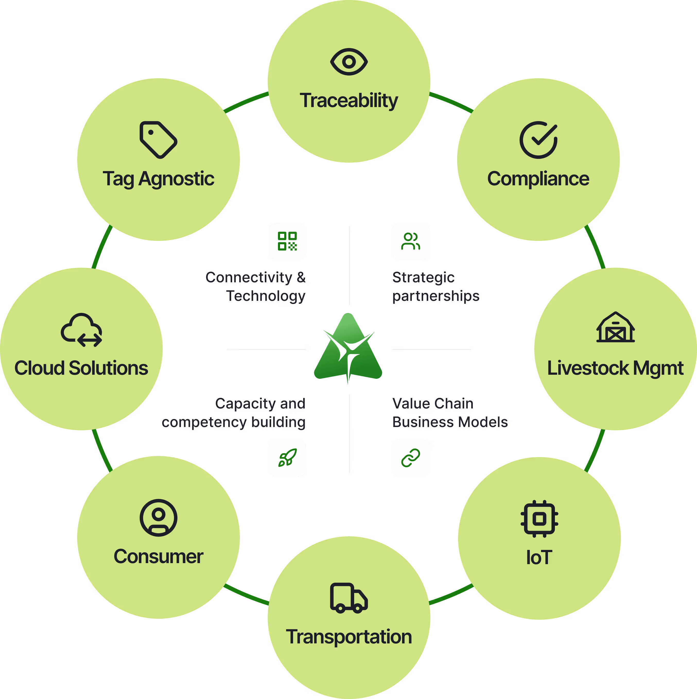 Connect farms, devices, and partners through one secure digital platform. Capture livestock, feed, and transport data in real time using RFID, sensors, and AI cameras.